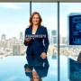 a professional discussing a phone number in a modern office.
